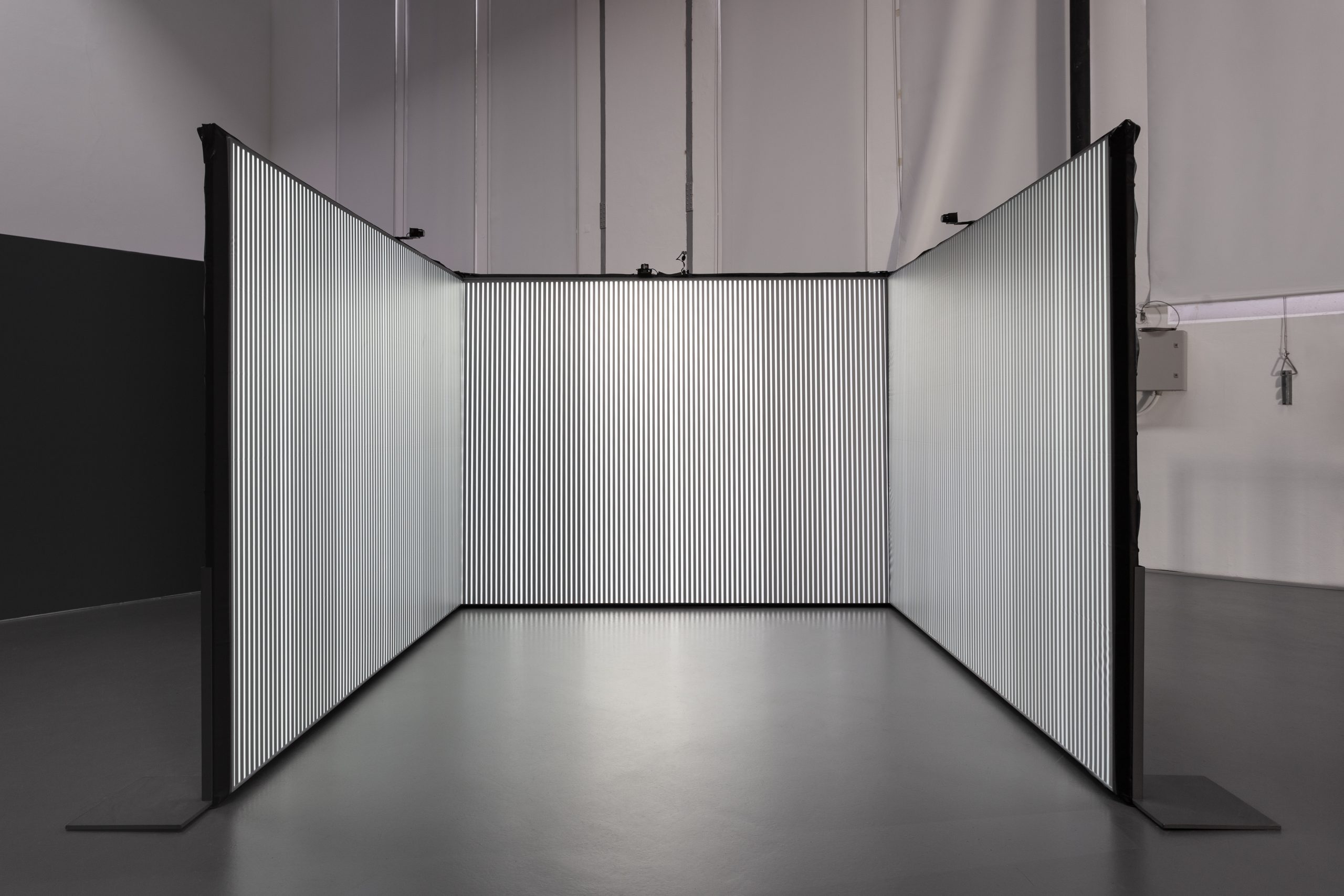 A instalação é composta por três grandes telas de 3,25m por 2,49m, que formam o volume de um cubo aberto, preenchido por centenas de linhas virtuais semelhantes às cordas de um violino. Afinadas com a tensão ideal, essas “cordas” vibram em frequências de luz e som que se transformam conforme a interação do público. Cada movimento, som ou gesto realizado pelos visitantes é traduzido em respostas visuais e sonoras em tempo real, criando uma experiência imersiva e única.